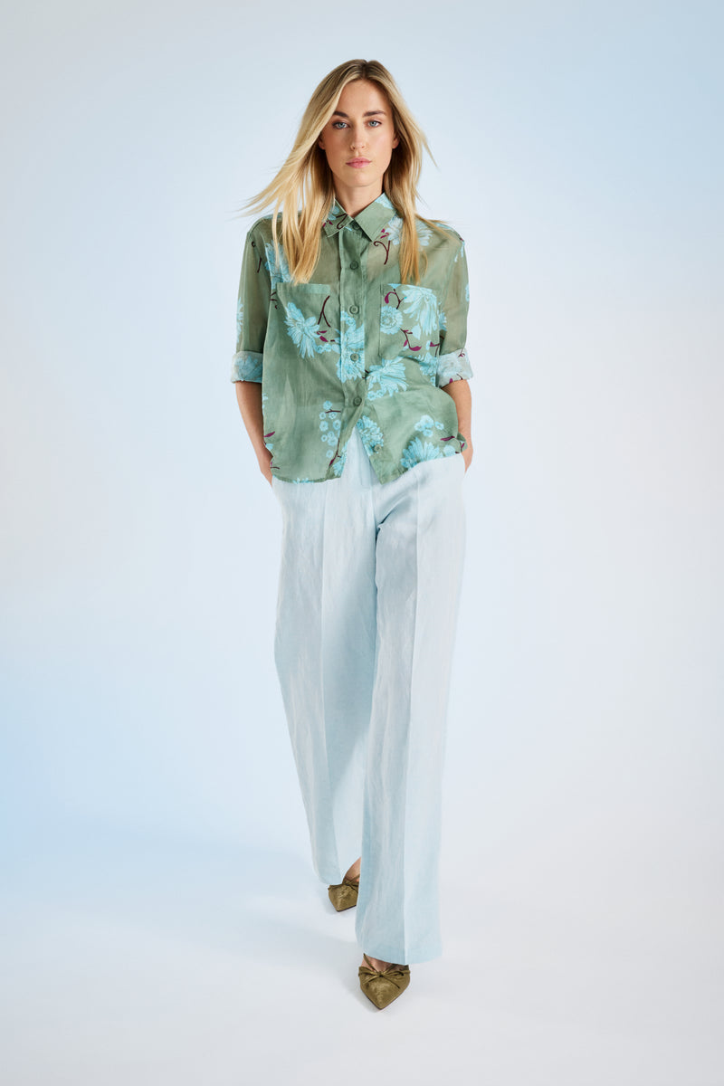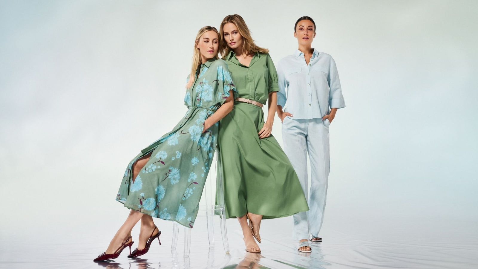 Zachte, natuurlijke materialen staan centraal. Licht glanzende stoffen met een linnenlook vallen soepel en zijn minder kreukgevoelig. Groen in een jeanskwaliteit zorgt voor een draagbare, casual basis die makkelijk combineert.
