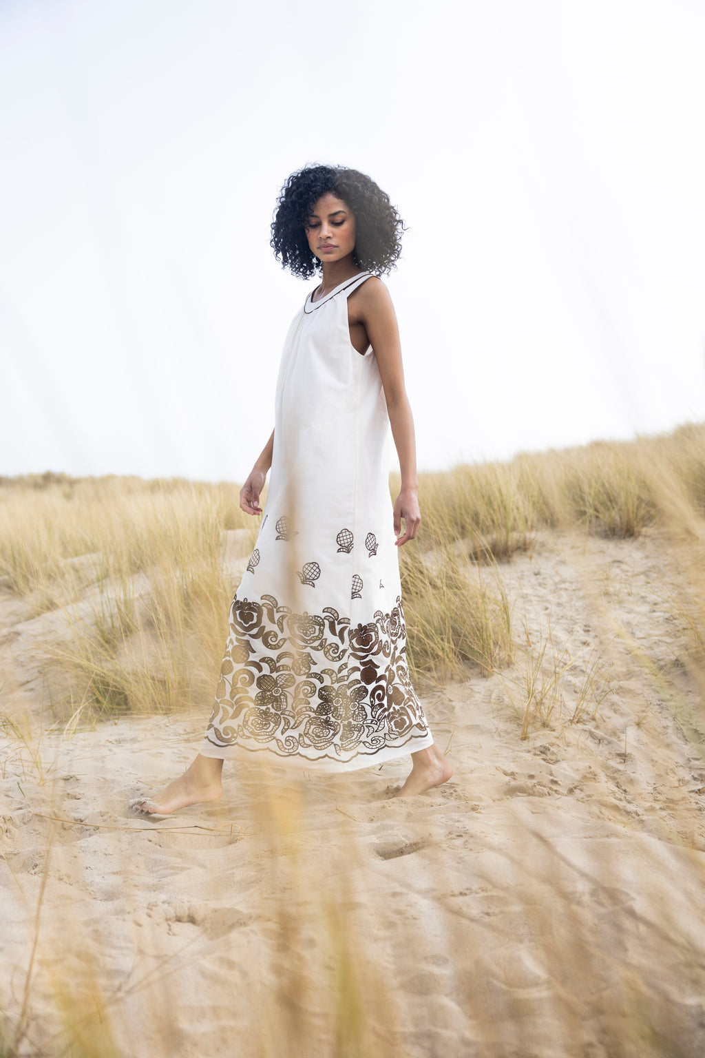 SPECIAL EDITION: Lang mouwloos kleed met broderie anglaise
