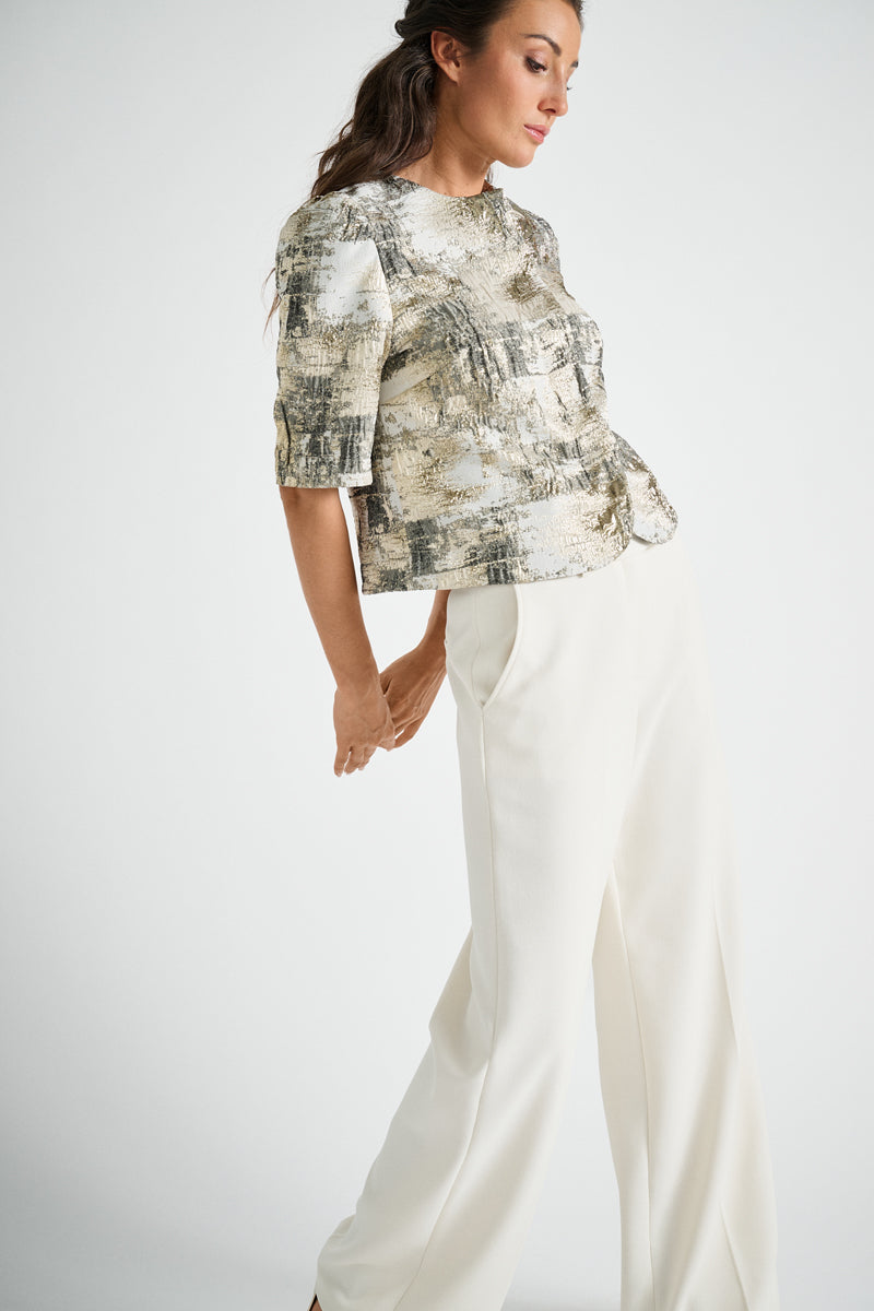 This stylish jacket in beige, brown and gold colours exudes festivity thanks to subtle glitter accents. The elegant design makes it perfect to combine with the same dress from the collection. A real eye-catcher for special occasions, with a chic and sophisticated look. The convenient button closure completes it.