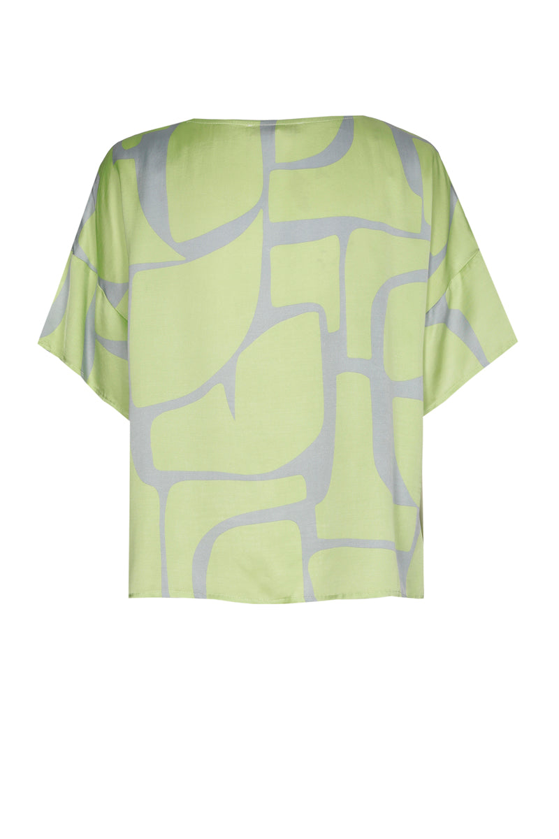 This item is available exclusively in our concept stores and is sold out online. This viscose blouse has a fresh grey and lime print that gives it a lively and summery look. The round neck and short sleeves make it ideal for warm days, while the loose model provides extra comfort and an airy fit. A cheerful and stylish piece that can be effortlessly combined with your favourite basics.
